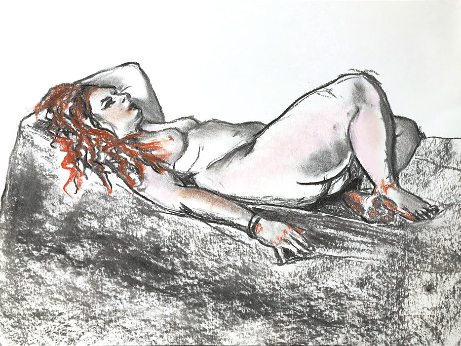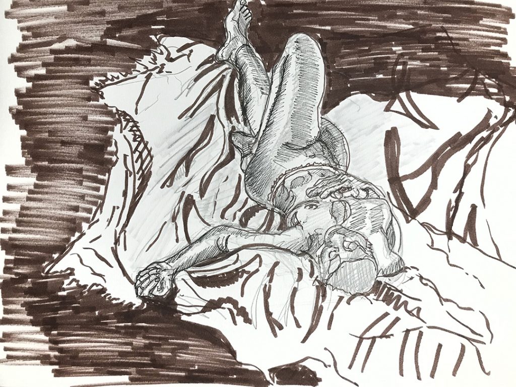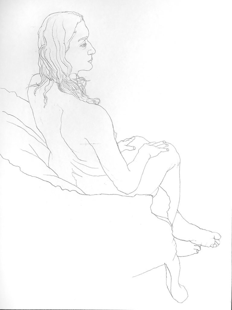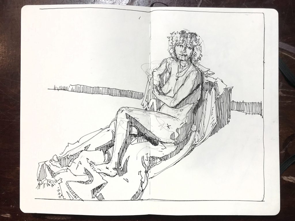 Very mellow session today with Sarah modelling the same pose for the full two hours. Nice, slow drawing for a relaxed Sunday afternoon 14/04/24