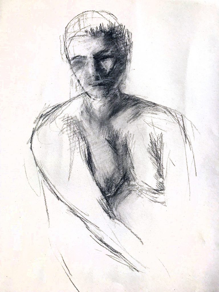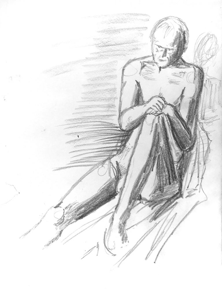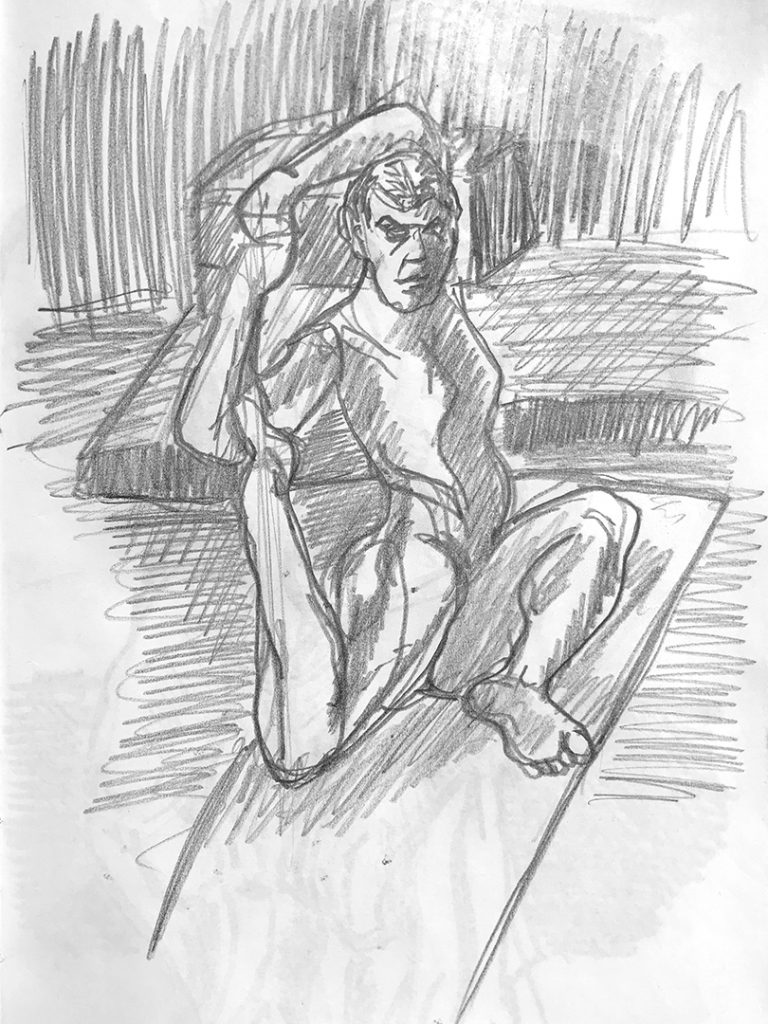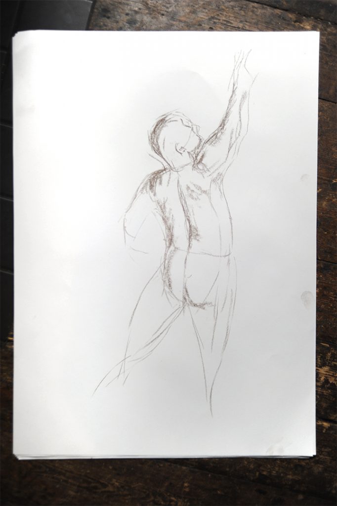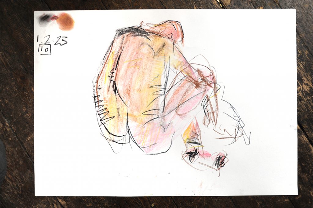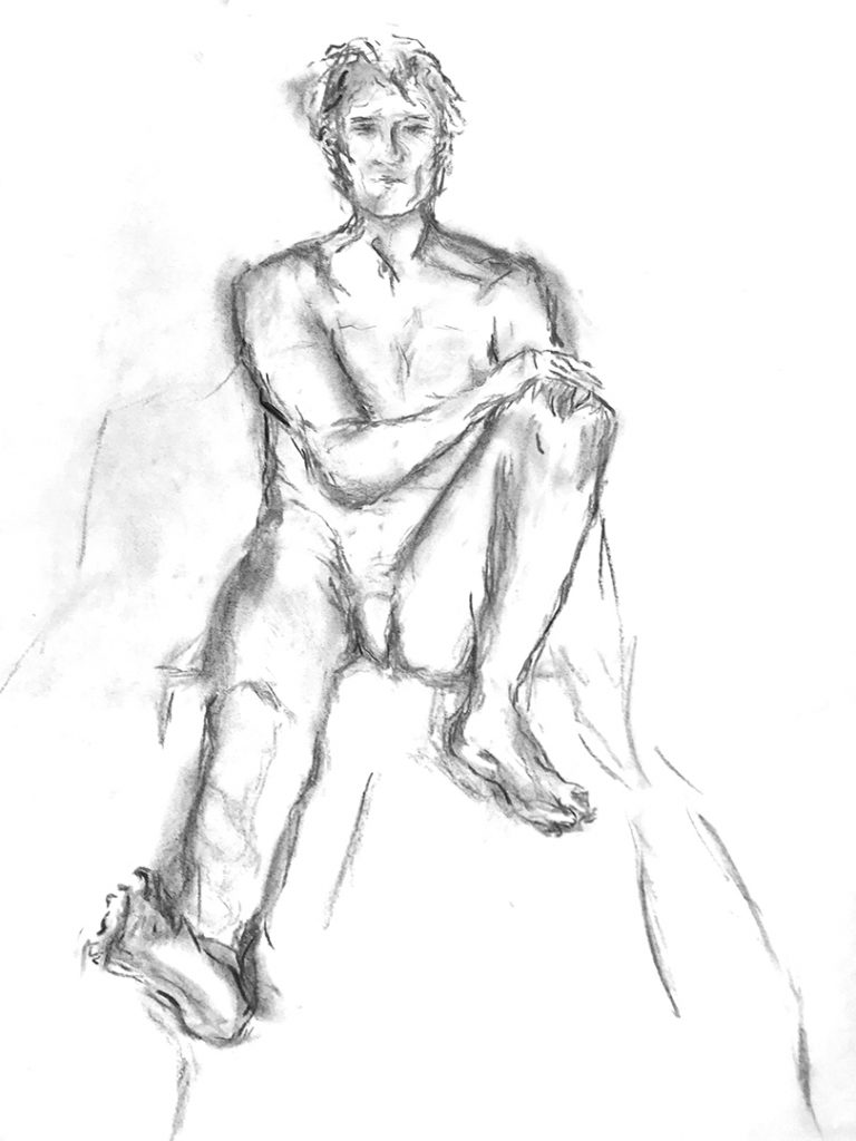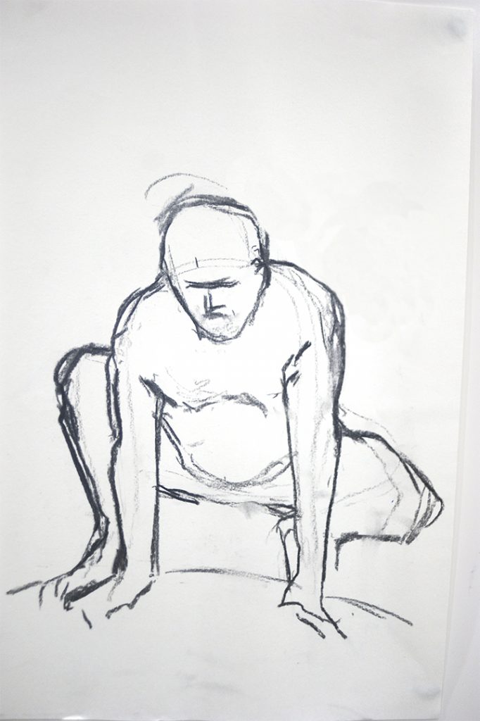 Much enjoyed and energetic session with Paul (modelling) this week who improvised daringly with the furniture to hand. For several of these poses he was up on a table giving a good POV all round. Thanks everyone for coming!…1/2/23