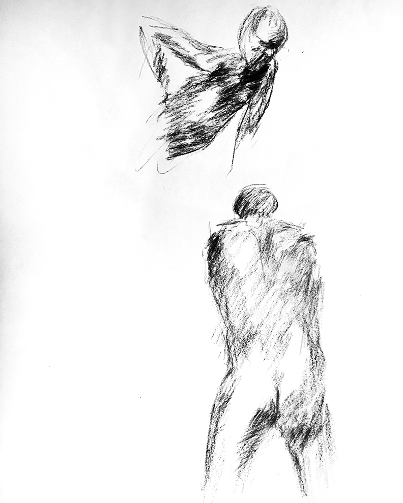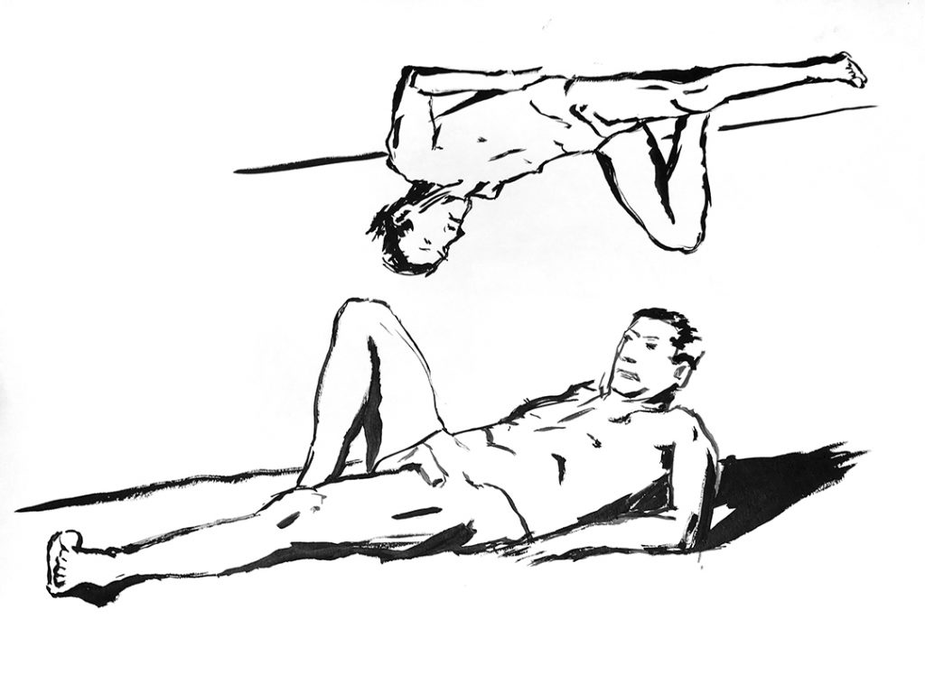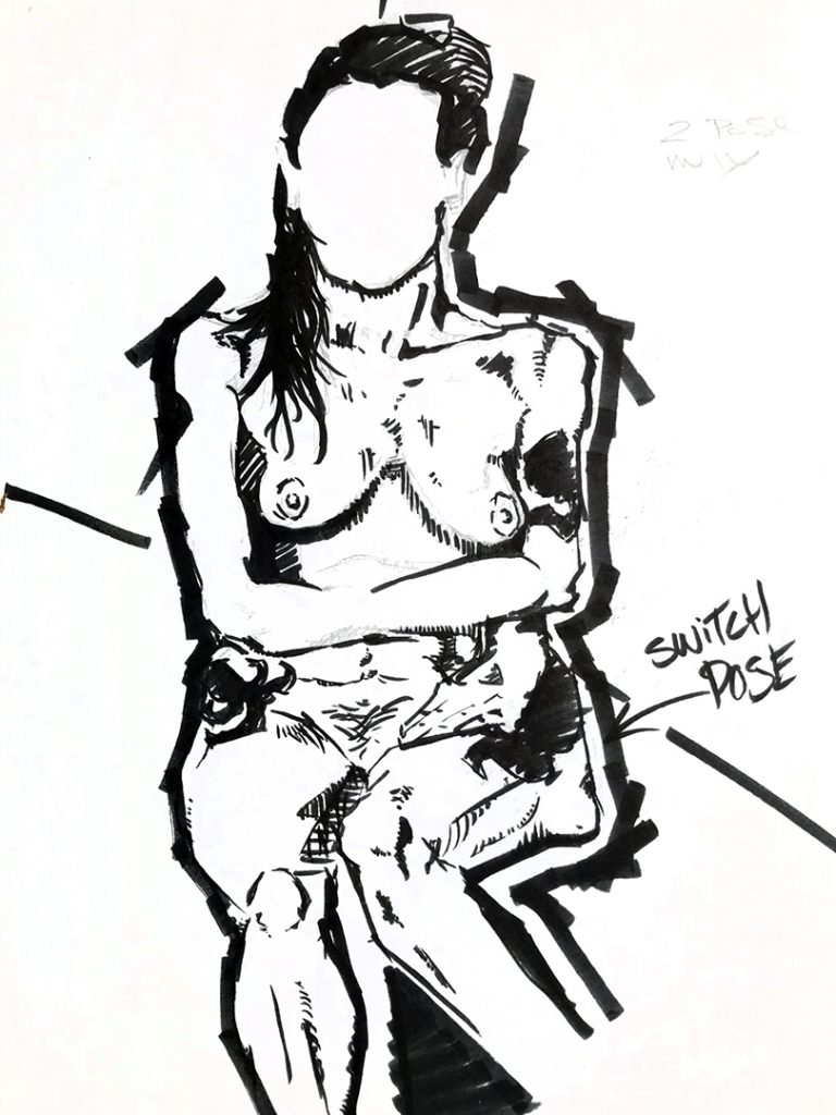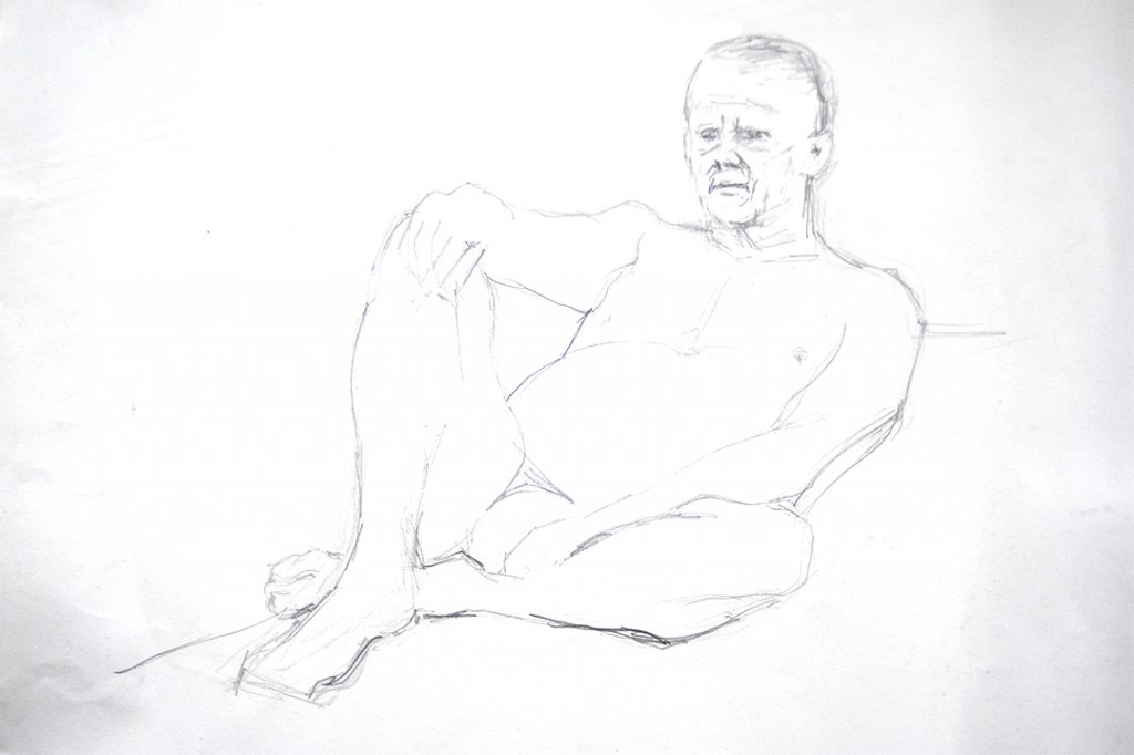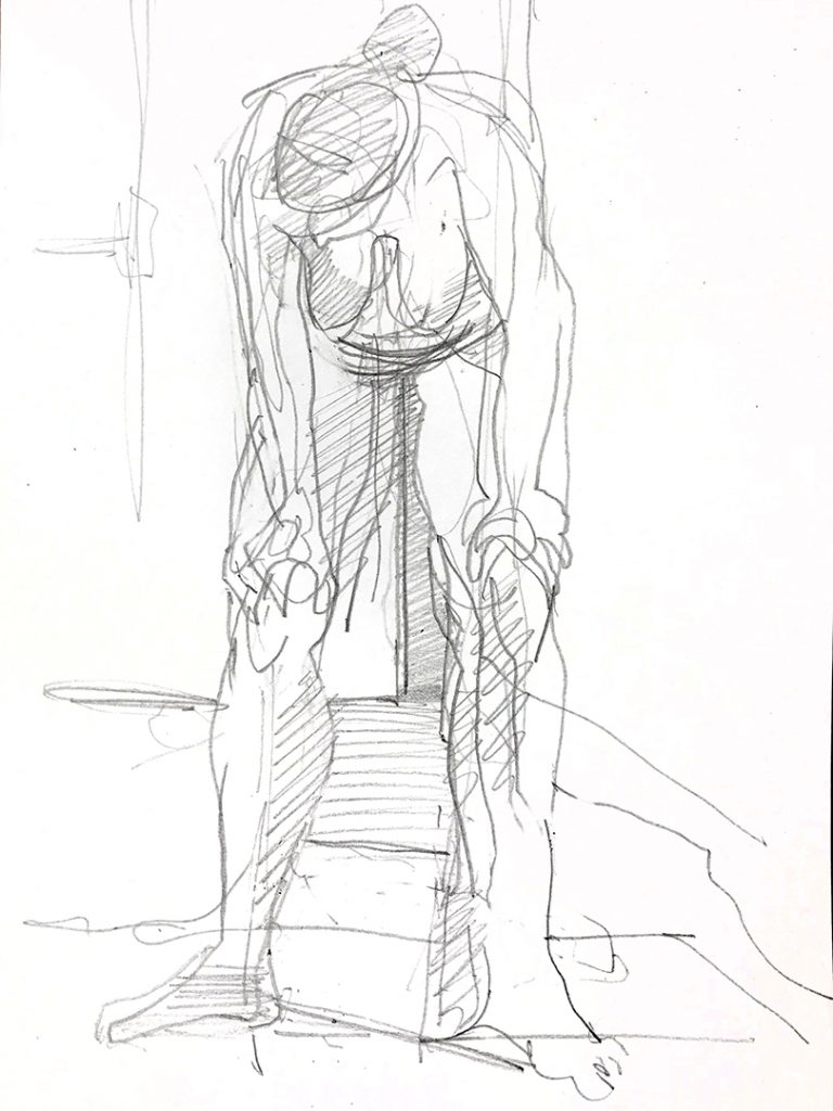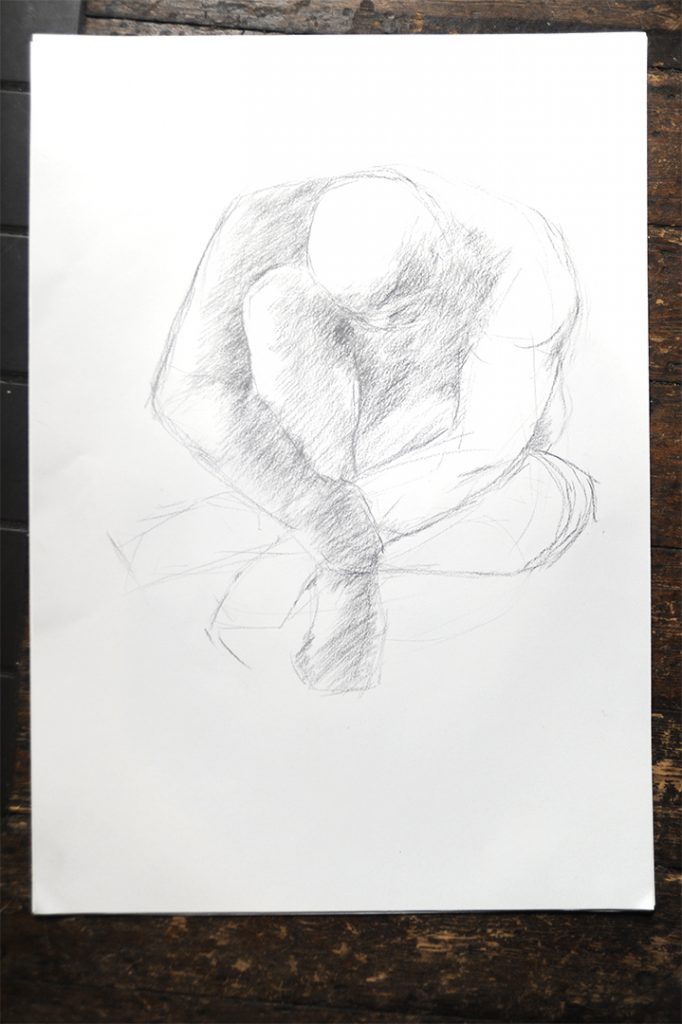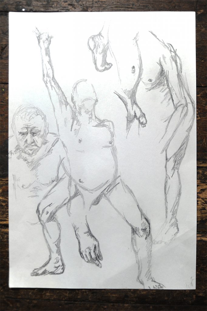 Much enjoyed and energetic session with Paul (modelling) this week who improvised daringly with the furniture to hand. For several of these poses he was up on a table giving a good POV all round. Thanks everyone for coming!…1/2/23