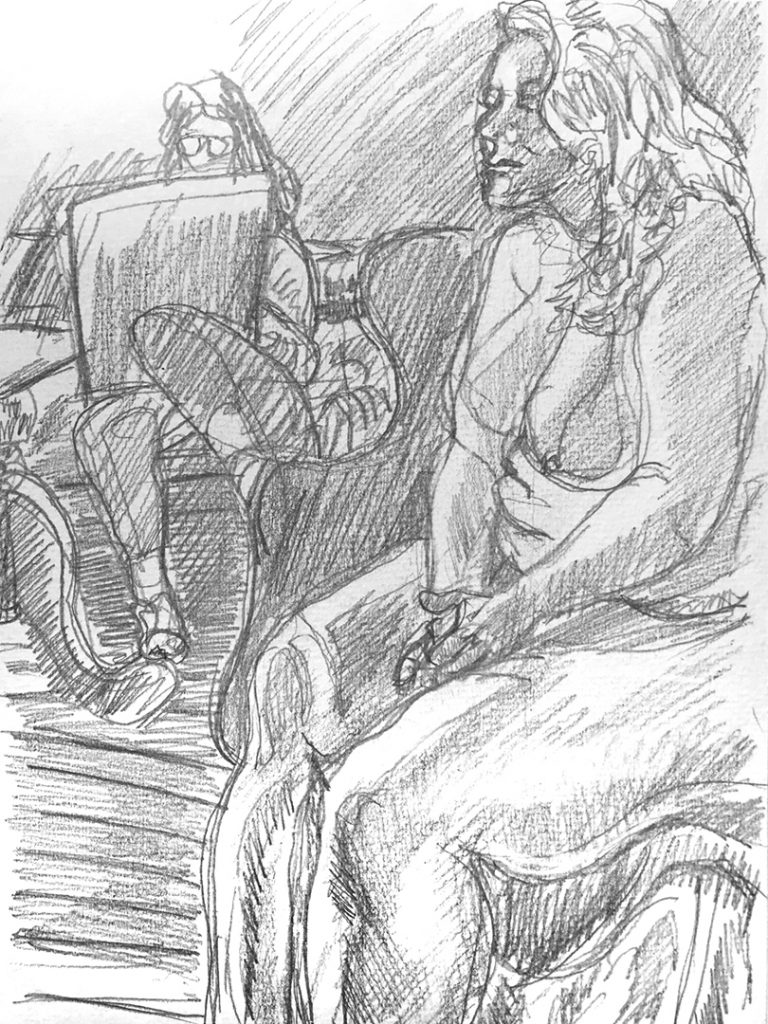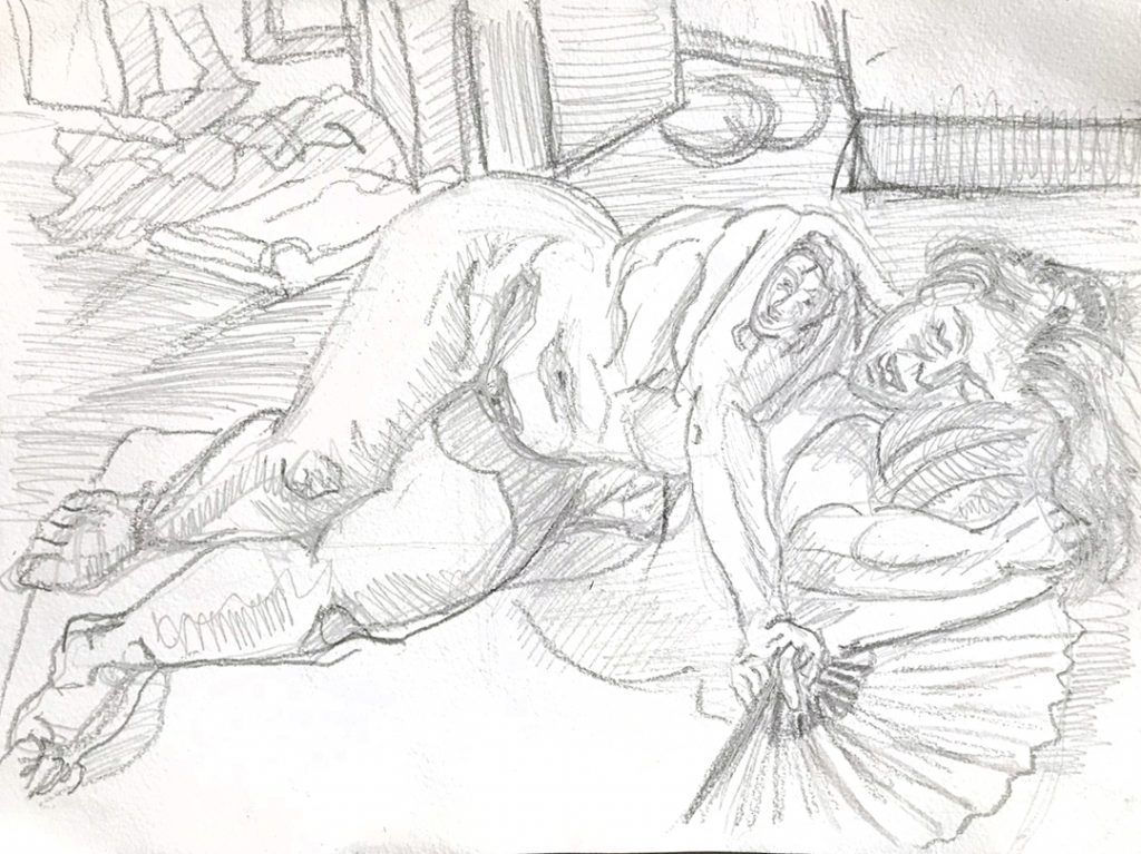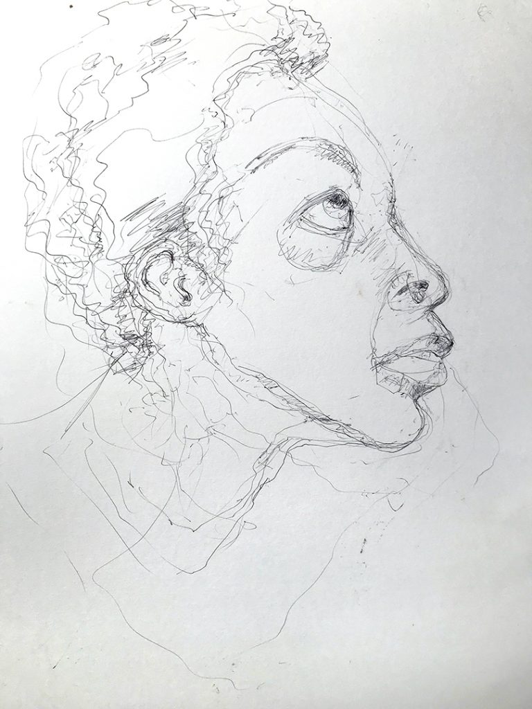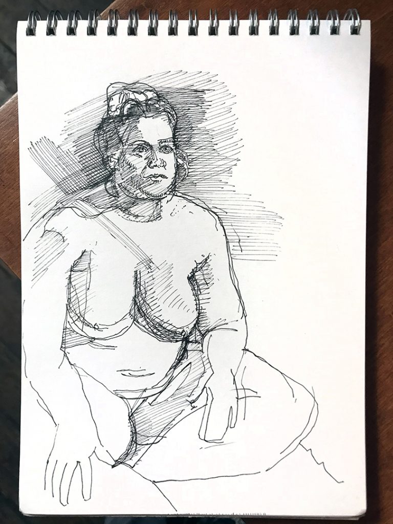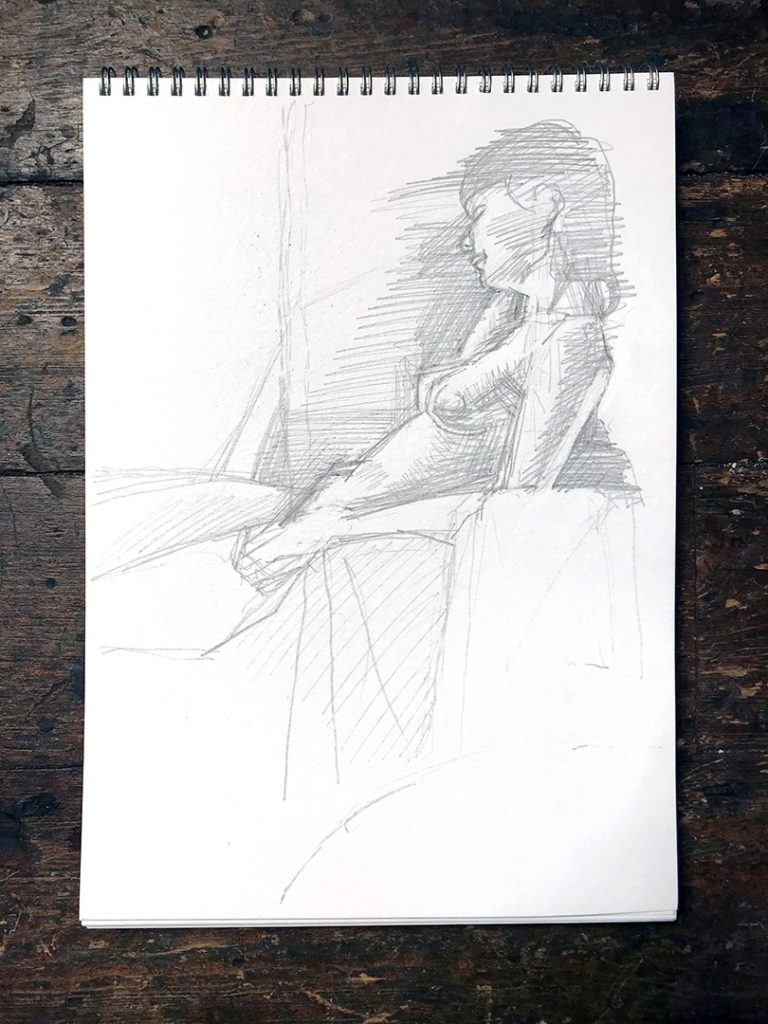 Loads of wonderful drawing in response to Sophie (modelling) this evening. The radiators were off and the fan was on to keep us all cool now the summer sunshine is here. 14/6/23