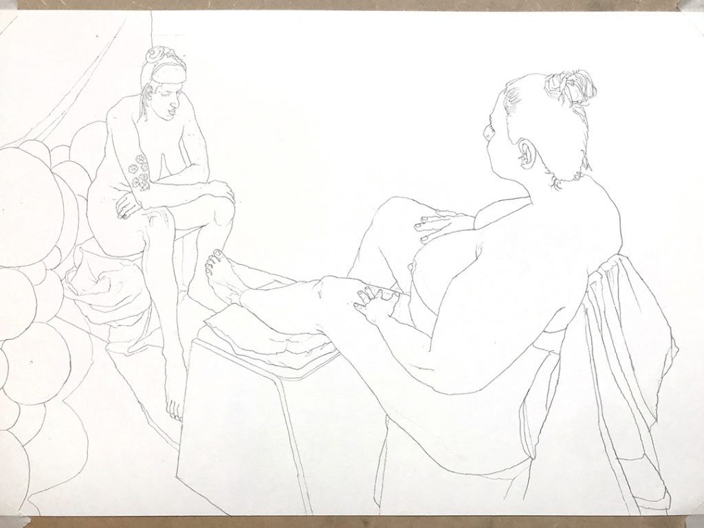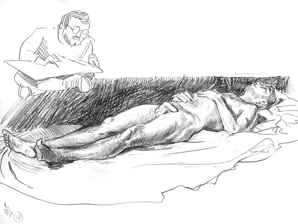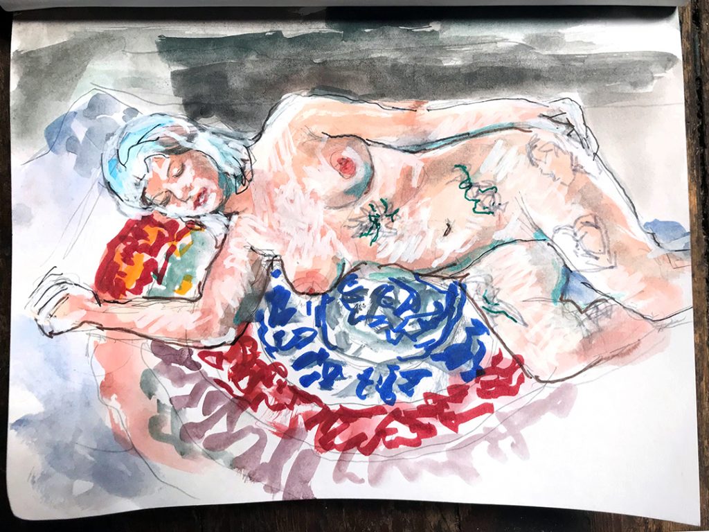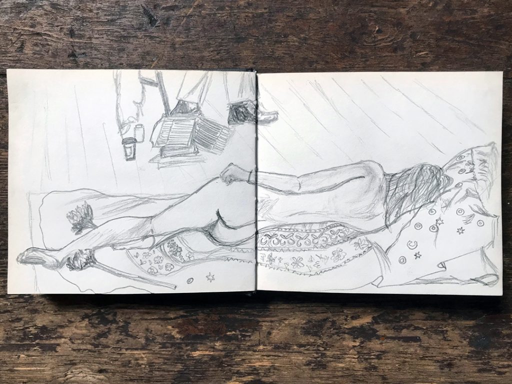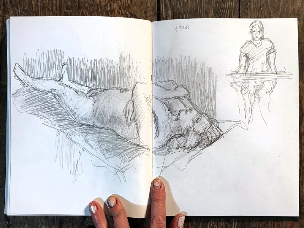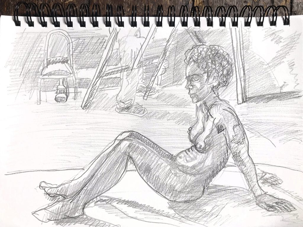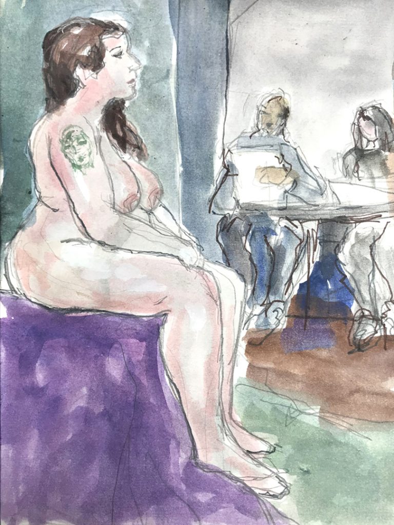 Becka (modelling) was beautifully captured in a host of wonderful drawings this week and the warm weather encouraged some post session merrymaking in the beer garden 07/06/23