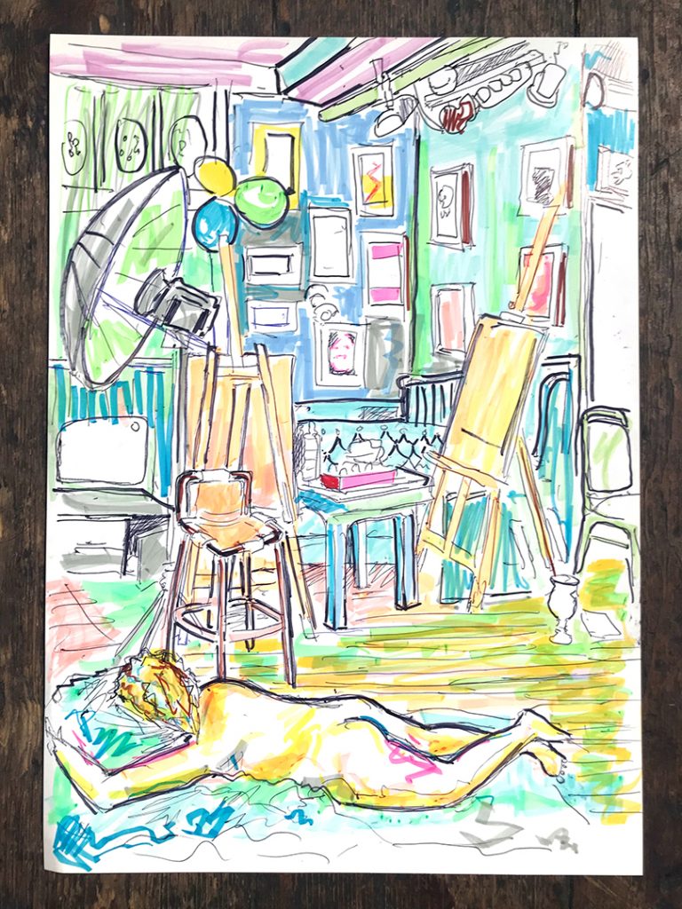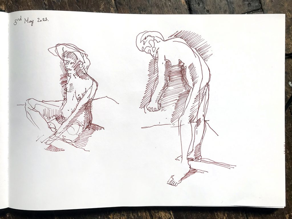 Great session with James modelling for the first time. Lively mixture of line and paint this week. Thanks for coming folks! 22/05/24