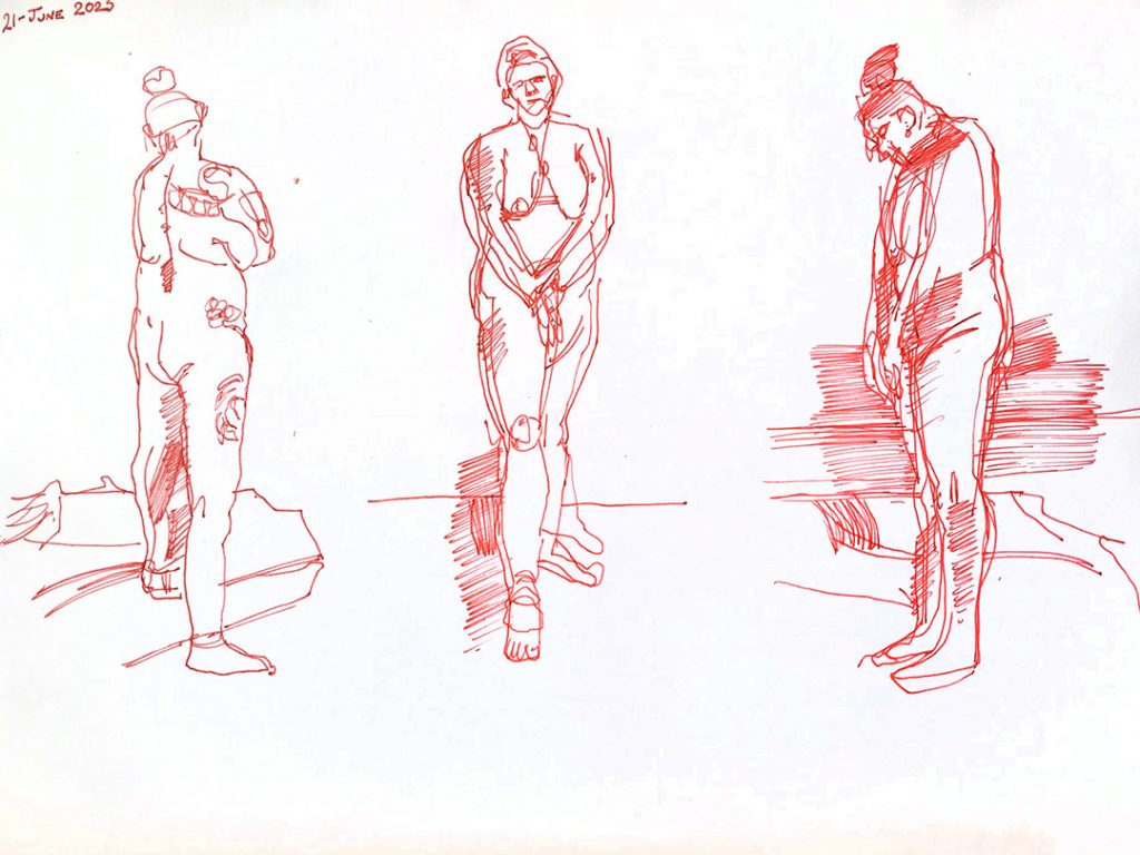 Thank you to Naomi for modelling beautifully for us this evening. It was a lively and chatty session with lots of conversation about swimming – hardly surprising given the heat. 21/6/23