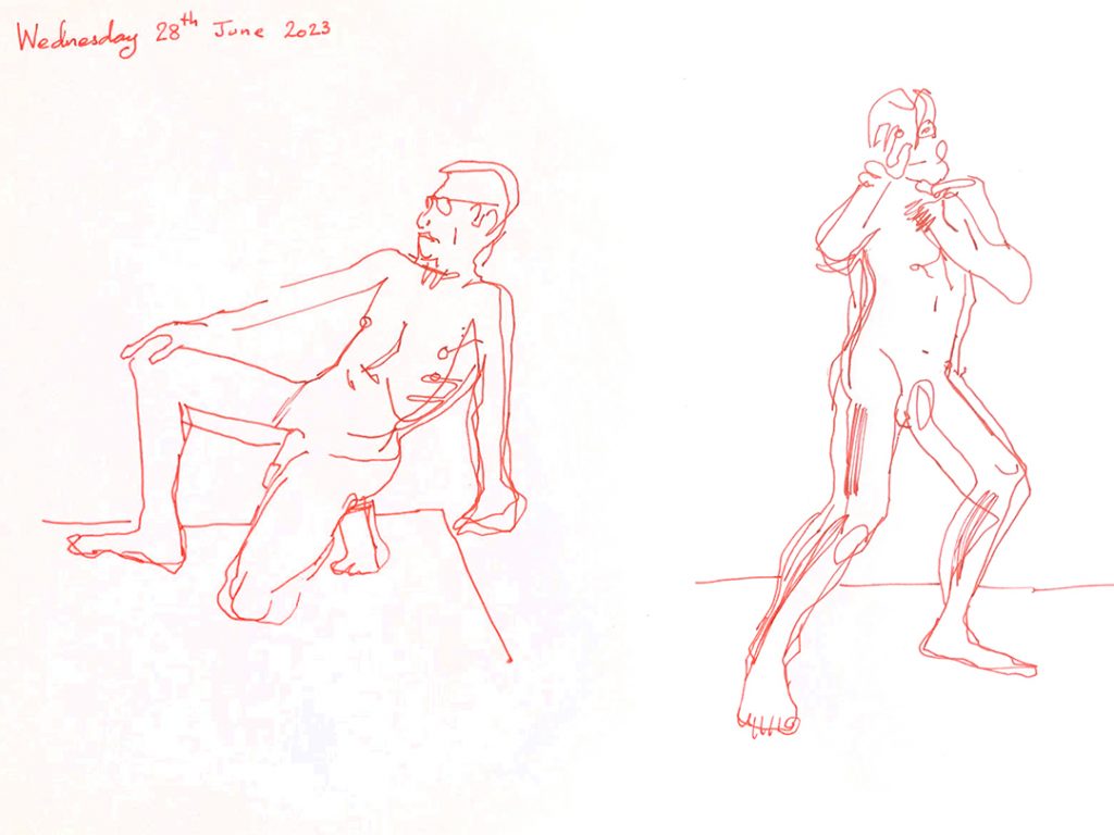 Thank you to our model – Rob – who held some difficult and energetic short poses for us this evening; providing the group with a challenge and generating great responses. 28/06/23