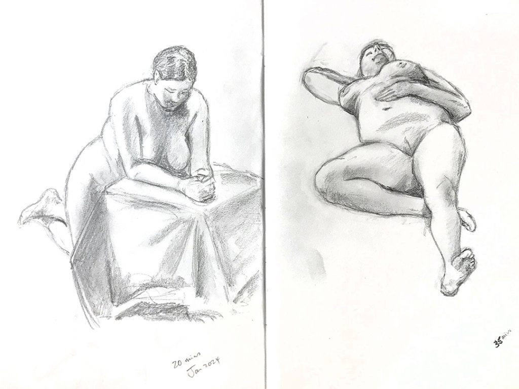 Becka (modelling) brought a wonderful relaxed vibe to the session this week and inspired loads of great drawing. Thanks everyone! 15/2/23