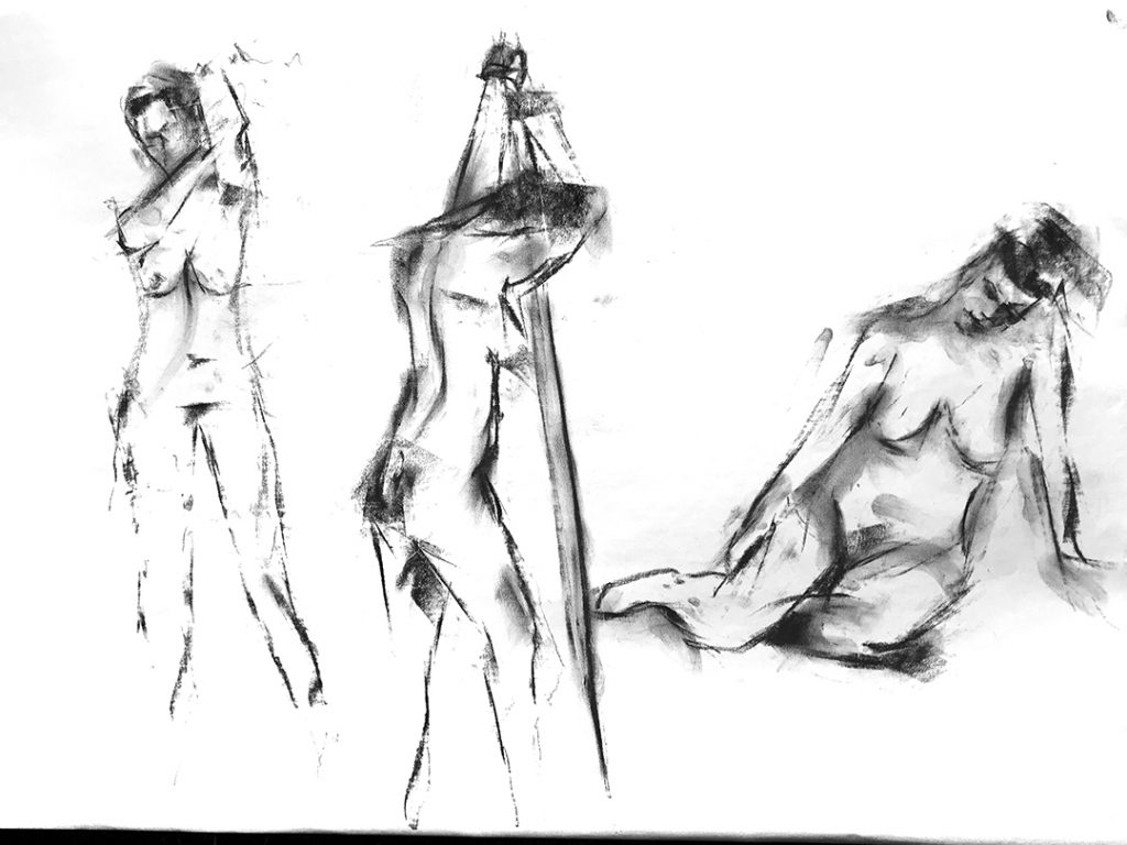 Very productive evening inspired by our model (Georgia) who held some really interesting and challenging poses. Thanks everyone! 05/11/23